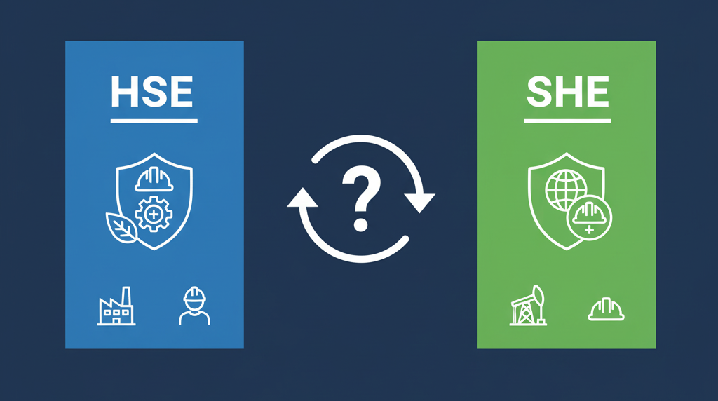 Secara fundamental, fungsional, dan cakupan pekerjaan, TIDAK ADA PERBEDAAN antara HSE dan SHE. Keduanya adalah istilah internasional yang merujuk pada departemen atau fungsi yang mengelola isu Keselamatan, Kesehatan Kerja, dan Lingkungan secara terintegrasi.